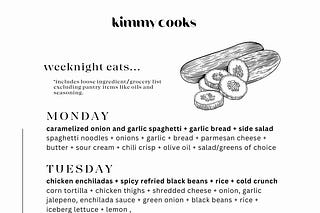 weekly menu, grocery list and a few recipes...